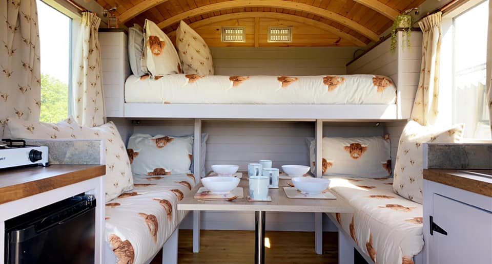 We have styled each of our Shepherd Hut to be a home away from home. All of our furniture has been made bespoke to our design to a high standard to ensure you have a comfortable stay. The huts are all equipped with electricity as well as solar powered lighting and charging ports for your mobile devices. Gas heating units available to hire for when its not so warm making your accommodation super cosy all year round.